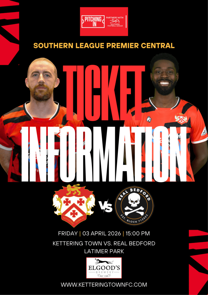 KTFC are expecting a bumper crowd for Friday’s Southern League Premier Central match Kettering Town vs Bedford Town kick off 15:00. The Club are asking that fans purchase their match tickets online (where possible) prior to the match to reduce the queues at the ticket turnstiles and ensure a positive fan experience on the day.
