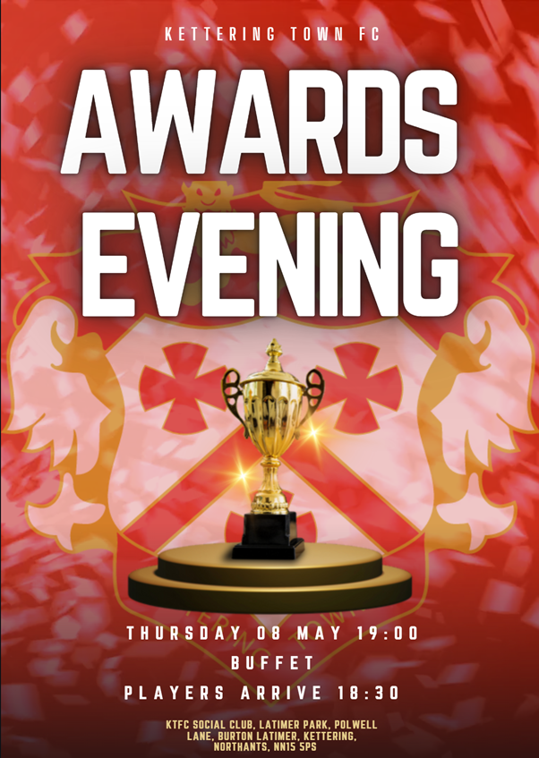 Kettering Town Football Club are holding their annual Awards Evening this Thursday 08 May 2025 at the KTFC Social Club. The event is open to all fans, starts at 19:00 and the Social Club will be open before the players arrive. Not only are there numerous prizes to be awarded to both players and volunteers […]