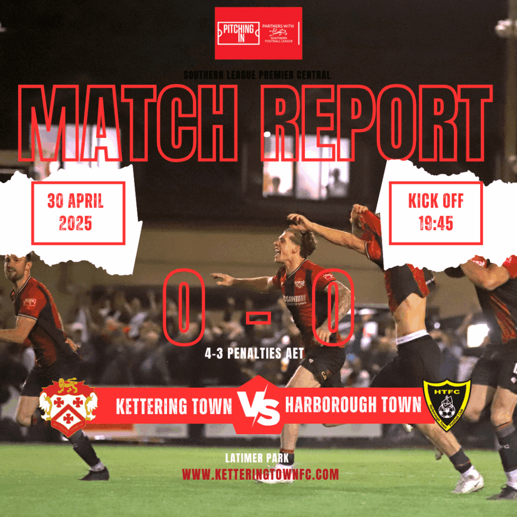 Kettering Town v Harborough Town Pitching in Southern League Premier Division Central Play-off Semi Final Wednesday 30th April 2025 7:45pm Kettering Town Harborough Town 1 Dan Jezeph 1 Elliott Taylor 2 Ben Hart 2 Dan Cooper Off 105 12 Lewis White 3 Josh Walsh 5 Connor Johnson (Capt) 4 […]