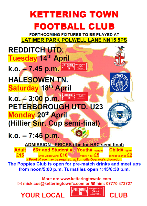 As we push for a playoff place we have three upcoming home League and Cup April fixtures at Latimer Park. Get behind the Poppies and