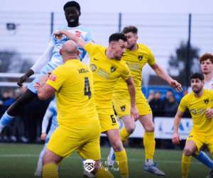 In the excitement, Kettering Town’s substitutes Harlain Mbayo and Dan Emovon ran onto the pitch to join in the celebrations and were booked for their exuberance. Kettering managed to survive the remaining time with Hart receiving a caution for time wasting.